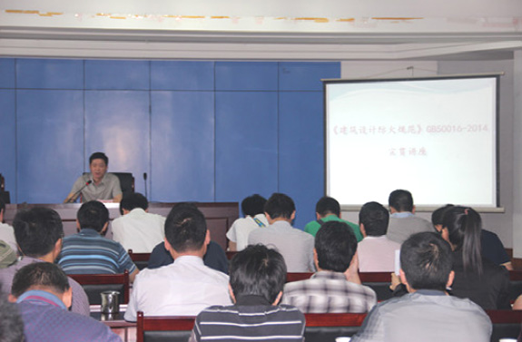 市規(guī)劃院院長賀玉龍傳達(dá)了“省《規(guī)范》GB50016-2014宣貫培訓(xùn)”精神,并與參加省宣貫培訓(xùn)的胡自立、崔睿、李文成、沈光紅、陳潔、密齊峰六位同志一起,分別從規(guī)劃選址、平面布局、規(guī)劃和建筑工程設(shè)計等側(cè)重點(diǎn),就新老規(guī)范的變化、新規(guī)范中的總則、術(shù)語和符號、廠房和倉庫、甲乙丙類液體及氣體儲罐(區(qū))和可燃材料堆場、民用建筑、建筑構(gòu)造、滅火救援設(shè)施、消防設(shè)施、電氣、供暖通風(fēng)和空氣調(diào)節(jié)等方面的重點(diǎn)內(nèi)容,向與會人員進(jìn)行了傳達(dá)和講解。