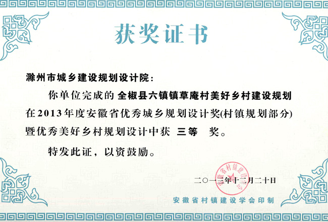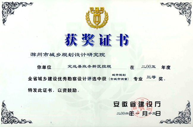 滁州市經(jīng)開(kāi)區(qū)地形圖測(cè)繪規(guī)劃獲獎(jiǎng)證書